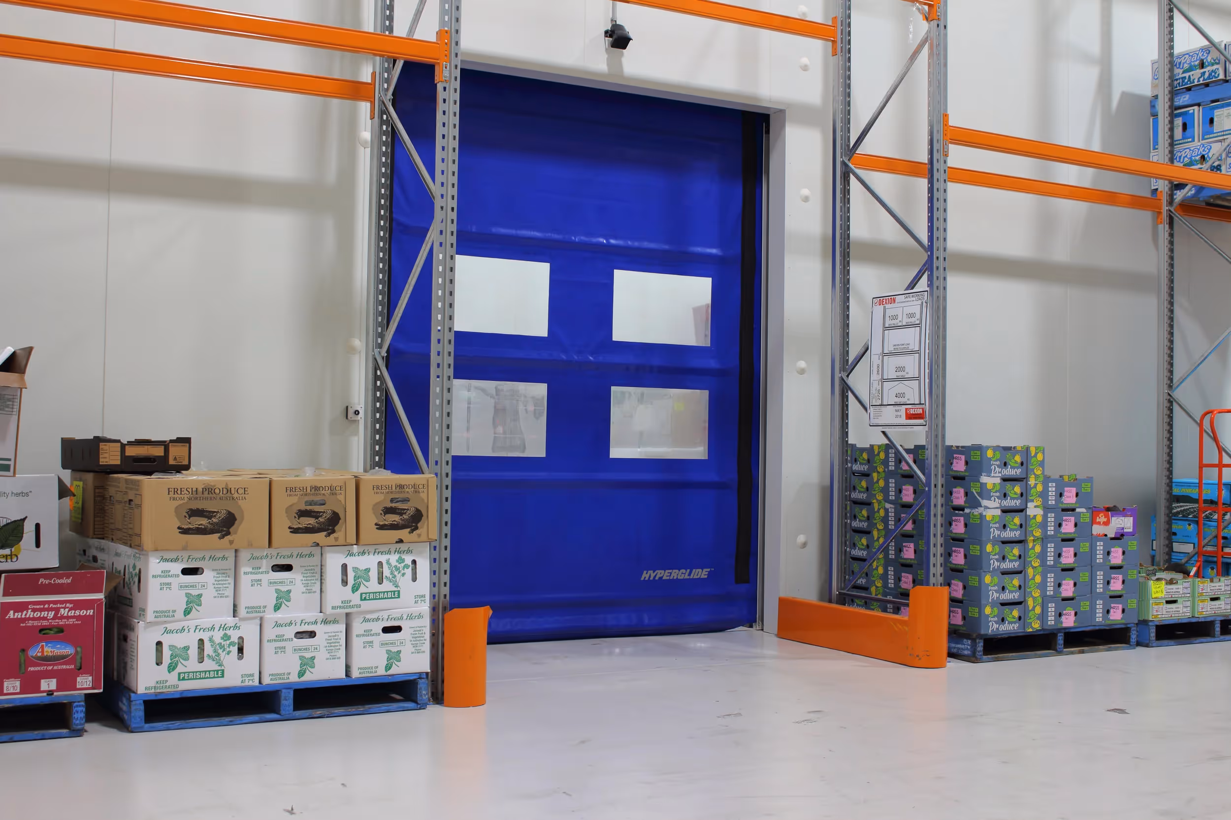 The HyperGlide is resistant to impacts by fork-hoists, with a robust door blade design and a crash-out capability with auto-relocation, which is set within a self-supporting door frame.